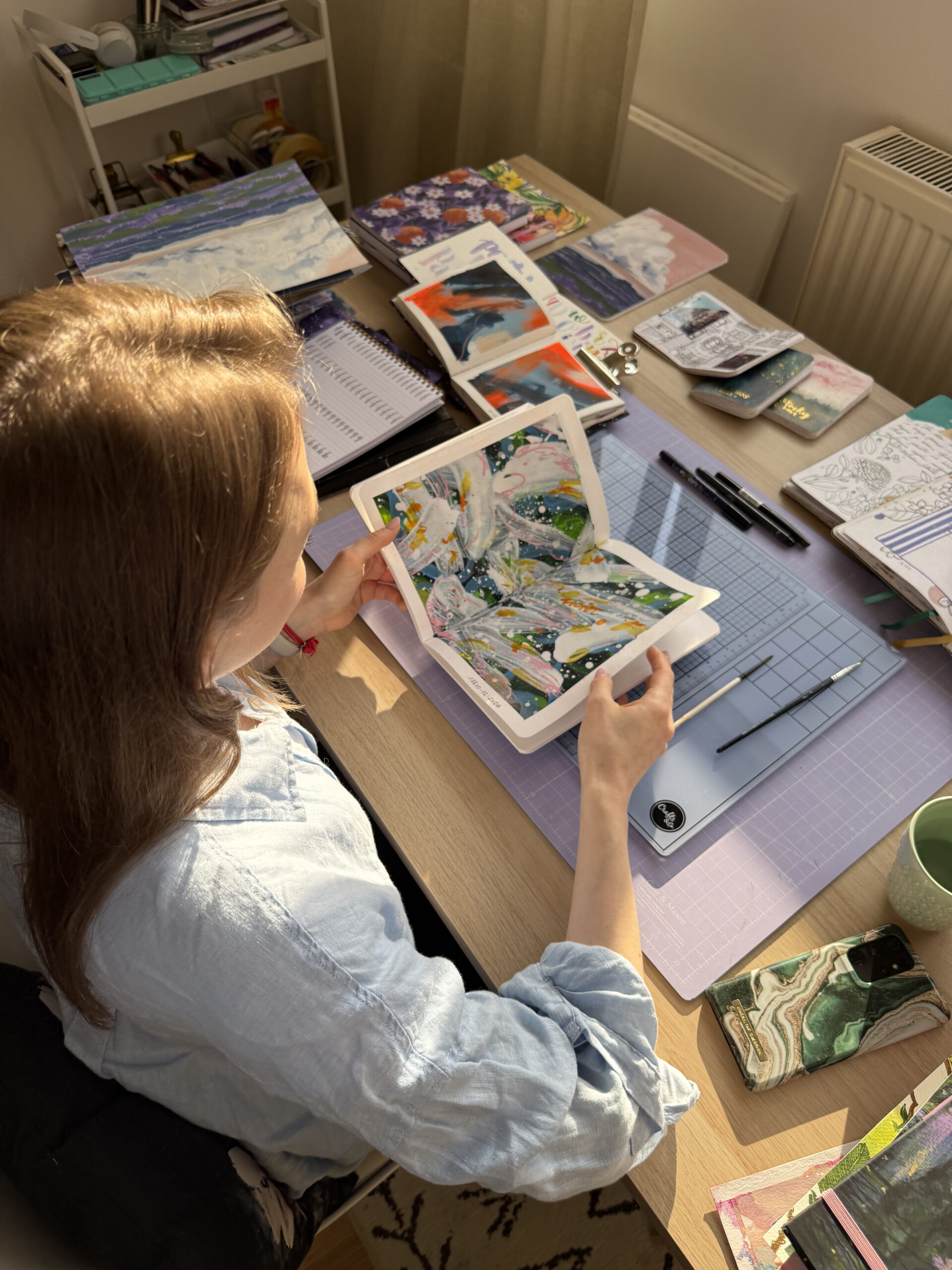 Tworzę notesy z pasji do pięknych przedmiotów i sztuki, takie które sama chciałabym kupować i używać. Ich unikalne wzory okładek powstały na podstawie moich ręcznie wykonanych rysunków i obrazów, a wnętrza przygotowane są z myślą o różnorodnych zastosowaniach. Wysoka gramatura papieru sprawia, że notes może służyć Ci jako dziennik, szkicownik, przepiśnik, kalendarz czy bullet journal