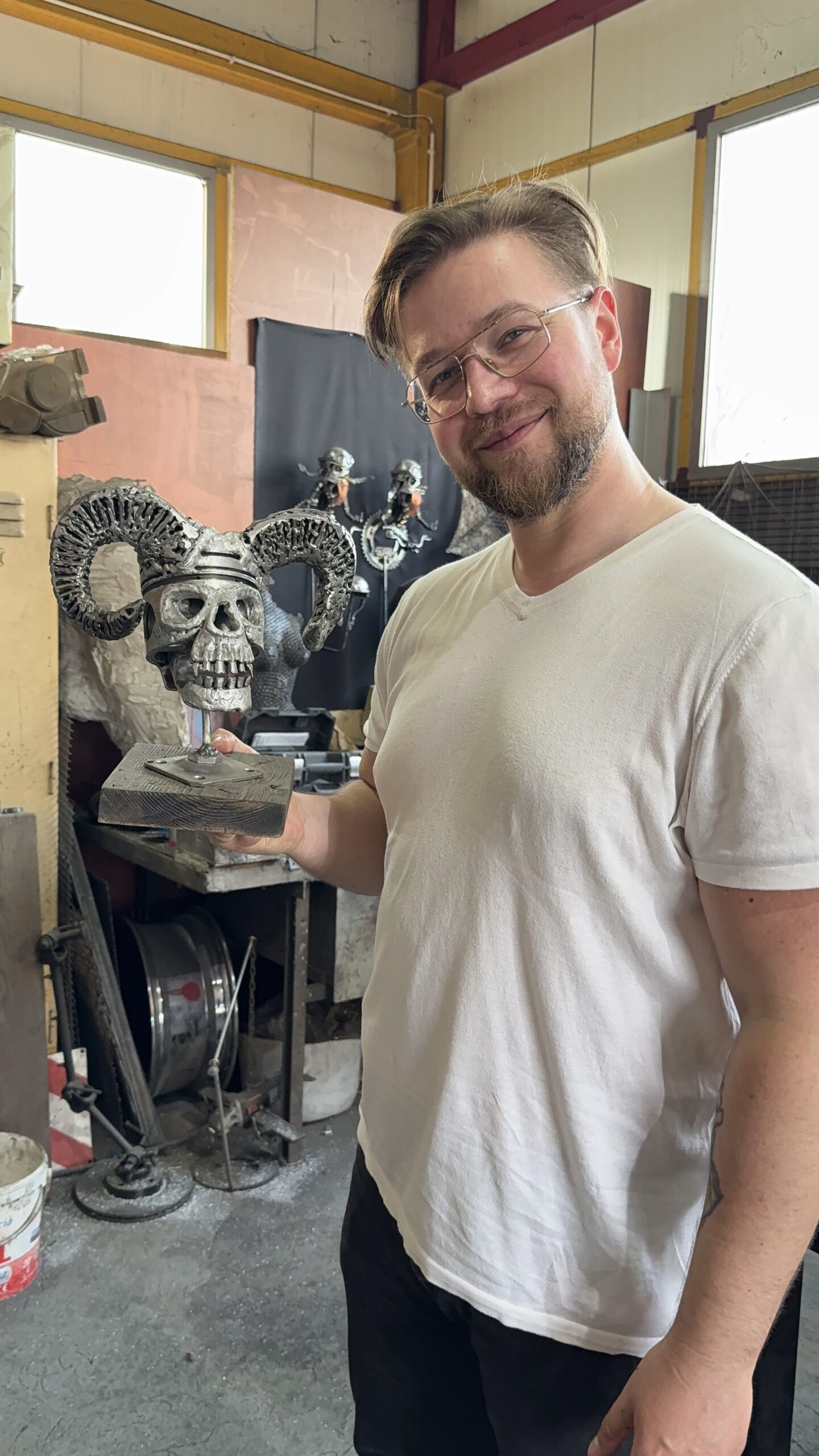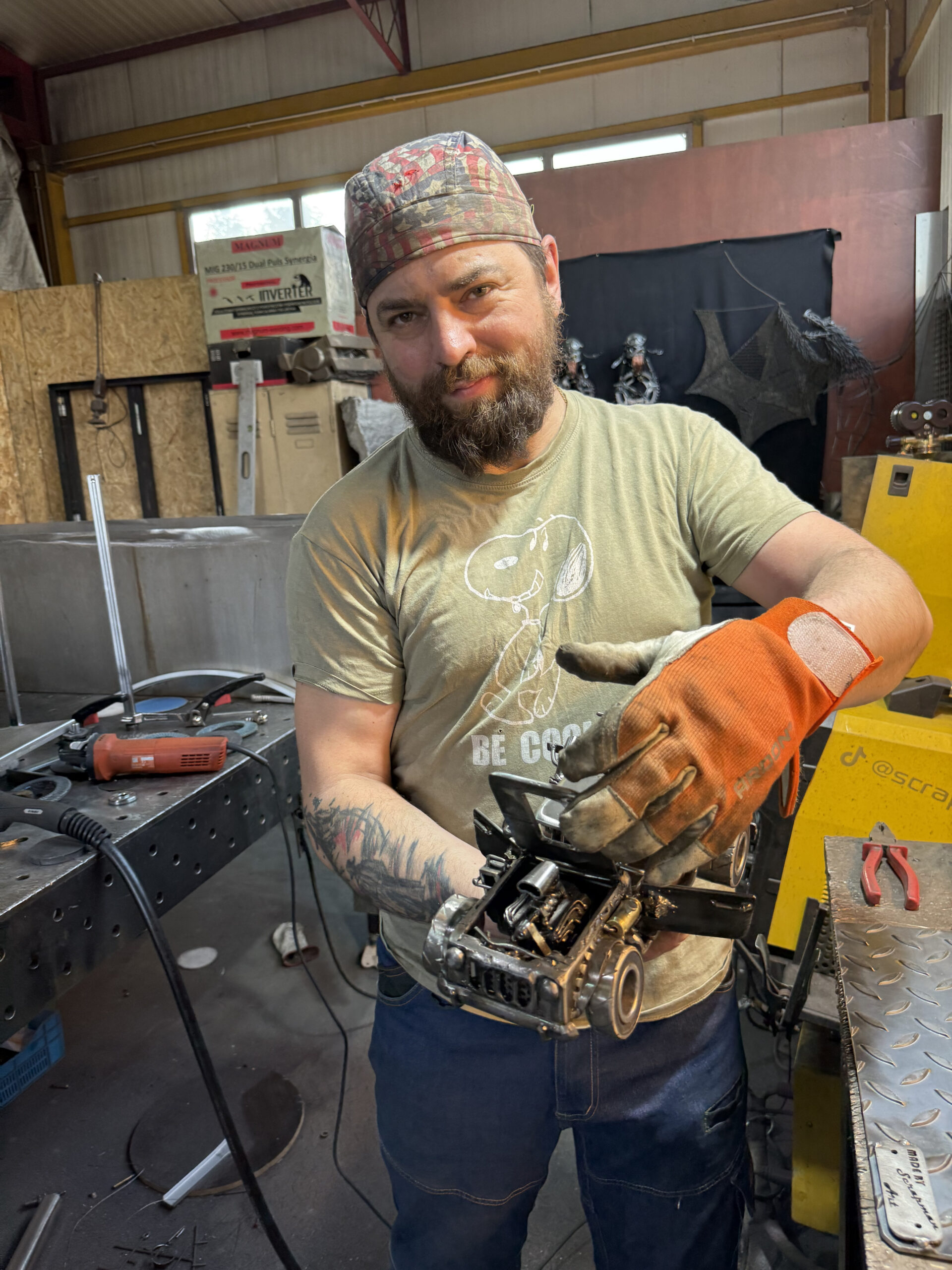 Cześć! Nazywam się Darek — w Scrapman Art nadaję metalowi drugie życie. Tworzę wyjątkowe rzeźby, meble, balustrady, bramy i lampy z aluminium, stali nierdzewnej, czarnej oraz odzyskanego złomu. Łączę metal z drewnem i szkłem, tworząc rzeczy z duszą i charakterem.