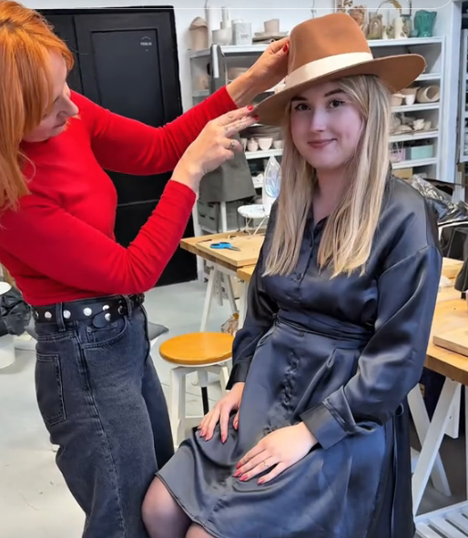 Maria Monica London to pracownia modniarska Moniki, której projekty nosiły koronowane głowy. Na co dzień działa w Londynie, a podczas wizyt w Polsce prowadzi w Warszawie intensywne, dwudniowe warsztaty. Uczestnicy przechodzą przez cały proces tworzenia: od namaczania i formowania filcu na drewnianych formach, przez dopasowanie rozmiaru, wszywanie taśmy i wykończenia, po zdobienia. Dostępne są trzy tryby nauki: kapelusznicze (filc), modniarskie (krynolina/opaska) oraz zaawansowane haute couture dla osób z doświadczeniem. Zajęcia są wymagające fizycznie, ale satysfakcja z własnoręcznie wykonanego nakrycia głowy – ogromna. Terminy pojawiają się nieregularnie.